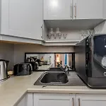 O apartamento é composto por 1 quartos e cozinha totalmente equipada com chaleira elétrica, refrigerador e forno. Há 1 casas de banho.